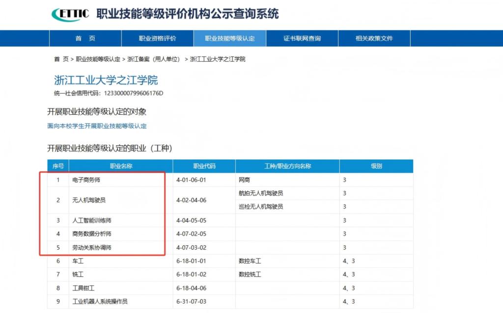 近日,经人社部职业技能鉴定指导中心公示,我院新增电子商务师、无人机驾驶员、人工智能训练师、商务数据分析师、劳动关系协调师5个职业技能等级认定职业(工种)。截至目前,学院职业技能等级认定备案的职业(工种)已达9个,拓宽了学院职业等级认定范围,基本满足学院各专业学生职业技能等级认定需求。
